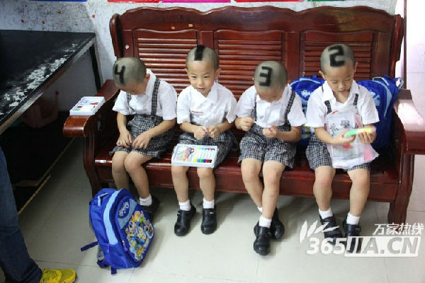 深圳四胞胎剪“1234”头萌照曝光 就读小学一年级