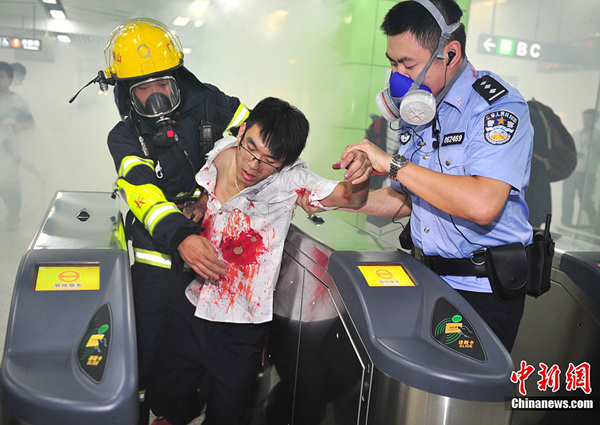 9月13日,深圳地铁综合应急演练在2号线湾厦站举行。13点26分许,有乘客携带易燃易爆物品上车,先后发生两次“爆炸”,部分乘客“受伤”,地铁站浓烟四起,乘客逃离现场。深圳市应急办、特警、消防、交警、医疗救护等赶赴事发现场处置,紧急疏散地铁乘客300多名,重伤员被警用直升机转移救治。14点45分,深圳地铁2号线恢复营运。