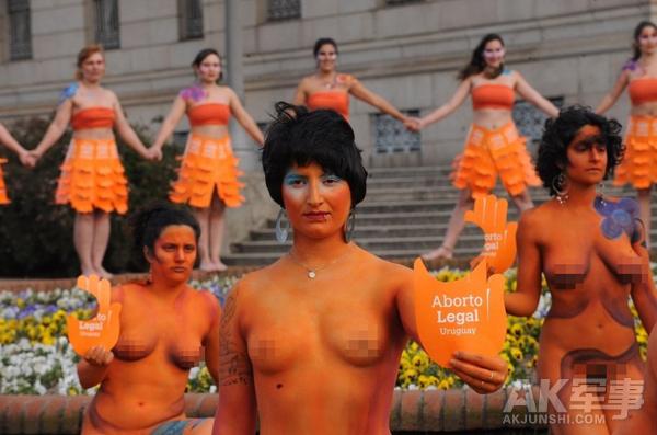 高清:乌拉圭妇女裸体彩绘集会 支持堕胎合法化