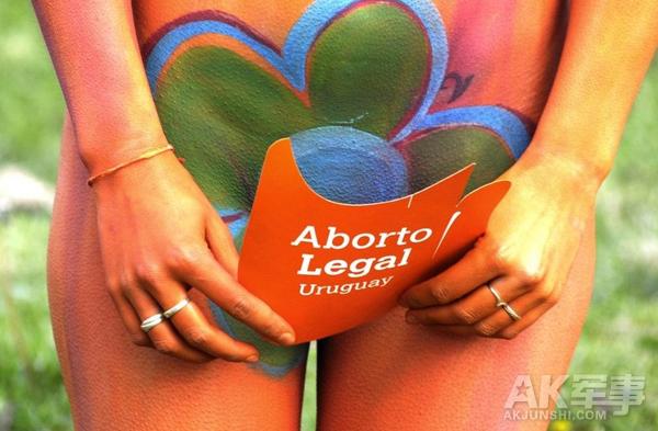 高清:乌拉圭妇女裸体彩绘集会 支持堕胎合法化