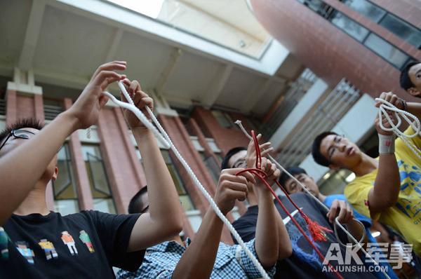 2012年10月17日,厦门大学爬树课,学生们学习打绳结,这些打出来的绳结在爬树中起到至关重要的作用。