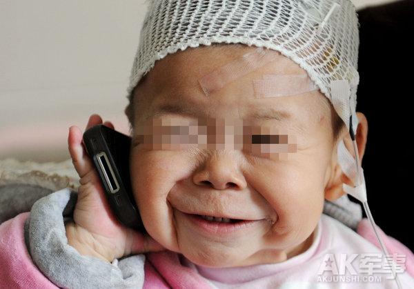 2012年10月24日,郑州儿童医院的小病号,1岁半的小馨馨像正常孩子一样抱着奶瓶喝着奶,高兴了会咧嘴笑,还会拿着妈妈的手机学别人打电话……但是她的脸看上去却像个80岁的老太太,嘴边布满褶子,脸颊两侧皮肤下垂。据医生称,这是一种极其罕见的皮肤松解症,目前医生暂无好的治疗方案,希望寻找有治疗经验的医院,让孩子重新恢复正常生活。