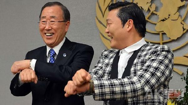 潘基文与鸟叔在联合国总部齐跳骑马舞