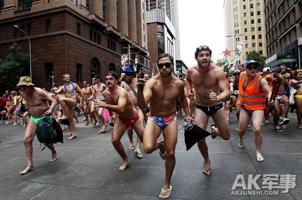 澳大利亚民众街头泳装游行 欲创世界纪录