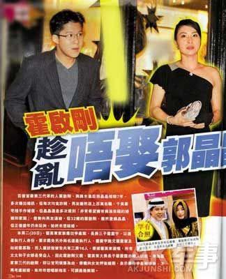 2008年北京奥运会后,“跳水女王”郭晶晶人气爆棚,她和霍启刚缠绵四年的恋情也成为最受媒体关注的一段“非娱乐圈爱情”。据报道,有人撞见这对“水陆鸳鸯”在京城某KTV发生激烈冲突,霍启刚拂袖而去。
