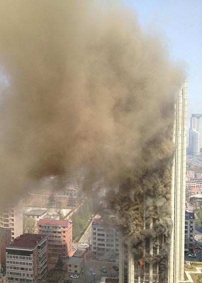 大连星海广场一公寓楼大火 滚滚浓烟吞没楼身