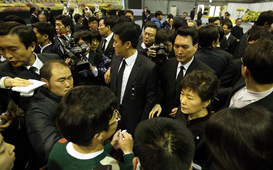 朴槿惠吊唁沉船死难者 遭家属围堵