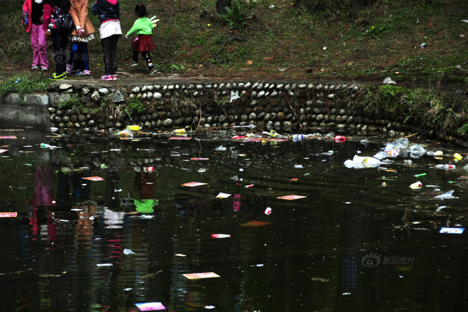 景区内水面上漂浮着许多垃圾。