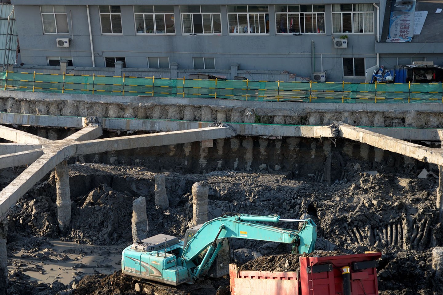 2014年5月6日下午3点左右,杭州文一西路花蒋路交叉口的一个加油站的二层楼房因周边工地施工影响,基坑施工时未能做好防护导致房屋倾斜45度,下降近一米。 该倾斜的二层楼房一层为超市,二层为职工食堂及宿舍。当地公安、消防已经赶到现场做防护,目前没有人员受伤和被困的消息。