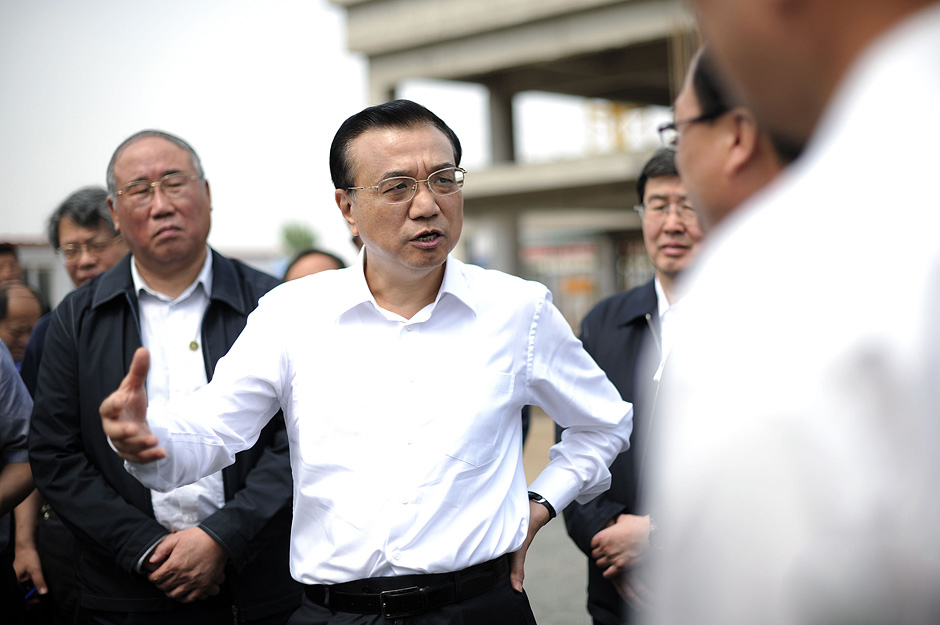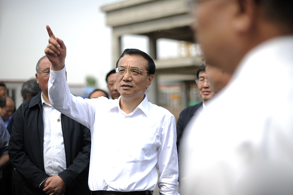 李克强考察内蒙古赤峰 走上脚手架与农民工交谈