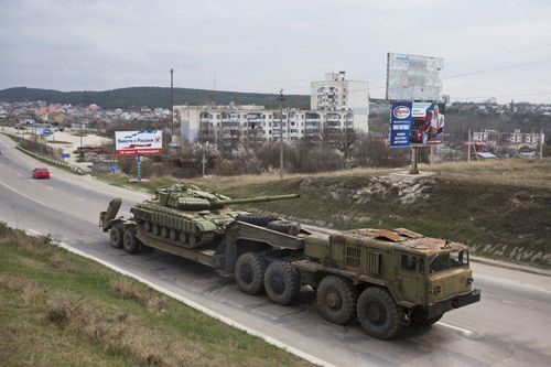在俄乌对峙期间,大批乌克兰机场、防空导弹阵地、军港、海军总部及其他军营设施遭到俄军士兵以及亲俄民兵层层围困。乌军羸弱的军事实力及涣散的战斗意志给世界留下深刻印象。然而,3月26日乌军从克首府辛菲罗波尔撤出的大批T-64坦克拆穿了所谓乌军力量“薄弱”的谎言。