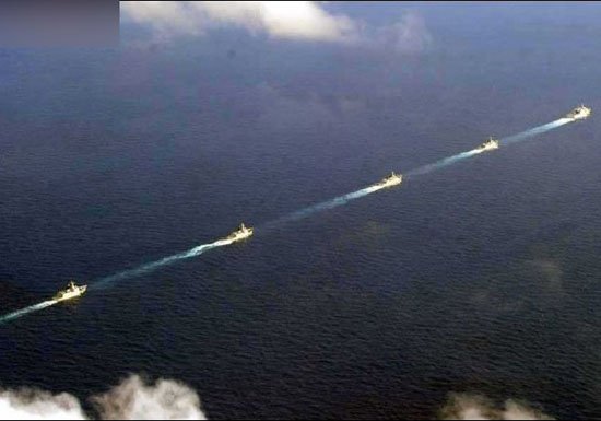 第二,环球网记者王欢报道,据日本防卫省统合幕僚监部5月8日发布的消息称,5月6日上午6时(北京时间凌晨5时)左右,经日本海上自卫队那霸第5航空群所属的一架“P3C”反潜巡逻机确认,中国海军舰艇编队5艘军舰(包括2艘旅洋I级(052B级)导弹驱逐舰、2艘江凯Ⅱ级(054A级)导弹护卫舰以及一艘玉昭级(071级)登陆舰)在冲绳本岛西南约650公里海域向南行驶,航向直指太平洋方向。稍有军事常识的人都会意识到,此次海军舰艇编队5艘军舰进入太平洋,直指南海,目的是要和南海舰队形成对菲律宾夹攻之,使菲律宾两面受敌。