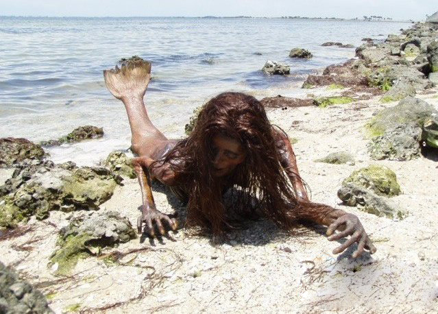 译文:海人鱼,东海里就有。大的长五六尺,样子象人。眉毛、眼睛、口、鼻子、手、脚和头都象美丽的女人,没有一样缺少的。皮肉白得象玉石,身上没有鳞,有细毛,毛分五种颜色,又轻又柔软,毛长一二寸,头发象马尾巴一样,长五六尺。阴部的形状和男人女人的一样,靠海的鳏夫寡妇大多都捉海人鱼,放在池沼中养育。交合时,与人没什么两样,也不伤人。