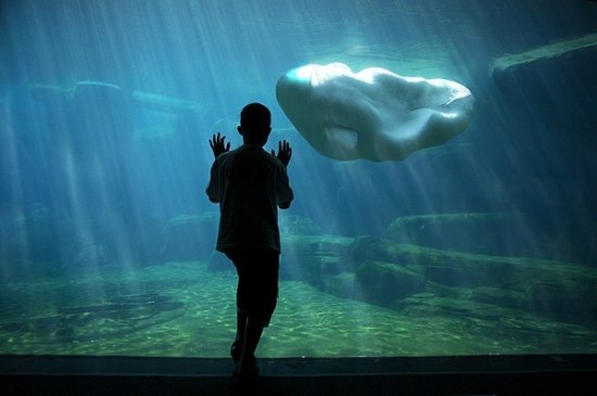 【白鲸】是一种生活于北极地区海域的鲸类动物?通体雪白?生性温和?现存数量约10万头?十分珍稀。
