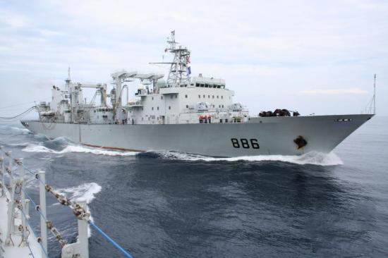 3月12日上午8时,中国海军千岛湖舰从浙江舟山某军港解缆启航奔赴泰国湾,为执行搜救马航失联飞机的任务舰船进行补给。千岛湖舰预计17日凌晨4时30分前抵达泰国湾附近海区待机区,开始为执行搜救马航失联飞机任务舰船进行补给。图为千岛湖舰资料图片。
