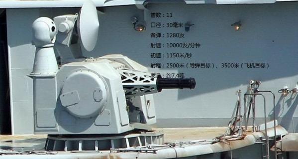 中国海军1130舰炮武器系统是基于730舰炮武器系统研制而来,其整个系统的构成除舰炮之外与730系统大体一致,1130舰炮较730舰炮在射速和备弹量均有较大的提高。1130舰炮武器系统的射速达到超高速的10000发/分钟,基本已达极限。1130舰炮在730舰炮的基础上进行结构改进,变单弹鼓为双弹鼓,备弹量翻倍,1130近程反导武器系统可拦截高超音速反舰导弹,其对导弹拦截效果在世界主要近程反导舰炮武器中处于前茅。目前1130近防武器系统已安装于辽宁号航母,后续预计则会在驱逐舰及两栖战舰艇上列装。